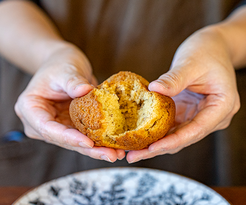 関西からも注文が舞い込む、当店の2番人気商品。完熟バナナにバター・生クリーム・きび砂糖・・・惜しみなく使って焼き上げる「原価度外視」のスペシャルマフィン。
